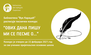 За ученике основних школа из Пријепоља, Библиотека „Вук Караџић“ расписује песнички конкурс „Ових дана пишу ми се песме о…“. Конкурс је отворен до 22. фебруара 2021. године.